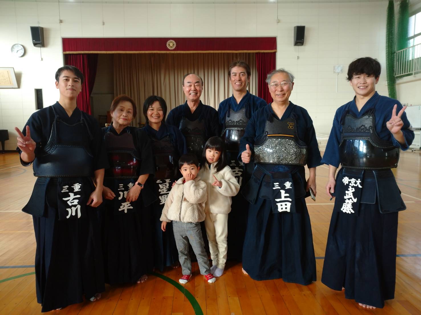 2月11日(祝火)、世間は建国記念日ですが、三重県の小中学生の剣士には毎年恒例嬉野大会がありました。晴天に恵まれ非常に暖かい中、嬉野大会に当団からも小学生低学年、高学年、中学生男子が参加しました。※他中学生も各中学から参加しました