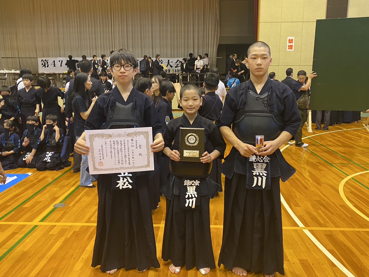 中学生男子団体 山手中Aが優勝(笠松君、黒川詢君、黒川新君)、大池中Aがベスト4!(古川君)